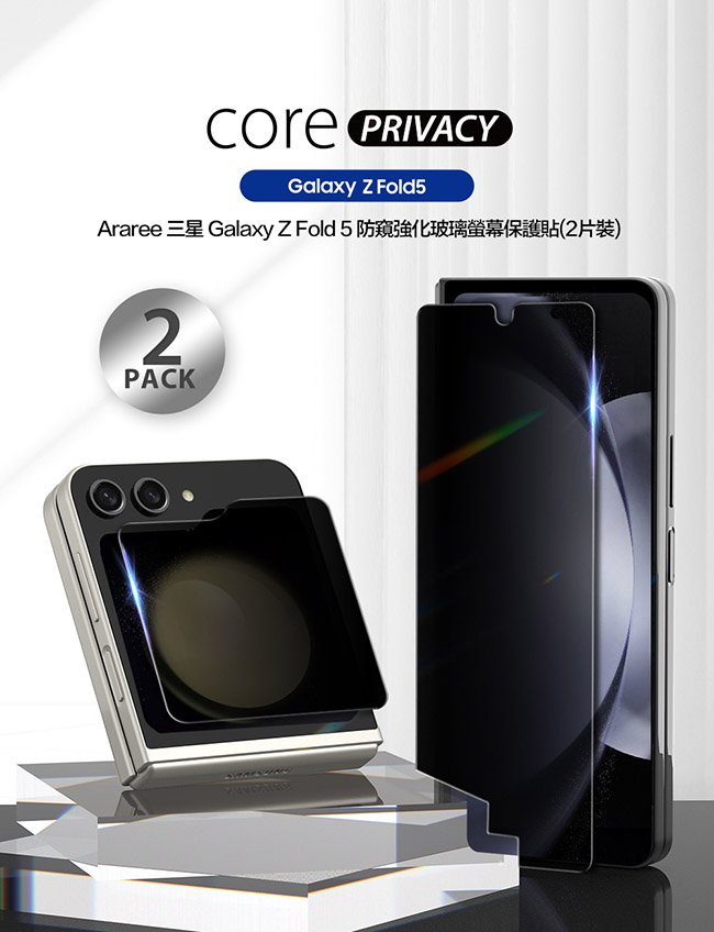 Araree 三星 Galaxy Z Fold 4/5 防窺強化玻璃螢幕保護貼(2片裝)