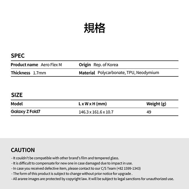 Araree 三星 Galaxy Z Fold 7 磁吸式保護殼(Aeroflex M)