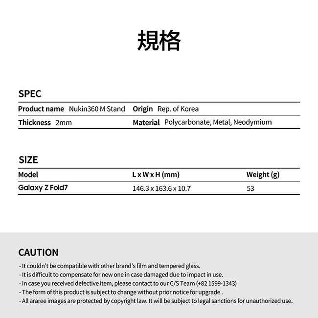 Araree 三星 Galaxy Z Fold 7 磁吸式支架保護殼(Nukin 360S)